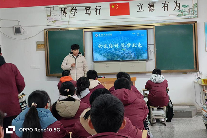 支部团员伍博文在母校肥东锦弘中学向学弟学妹们分享了自己高三的学习经验和丰富多彩的大学生活,鼓励他们努力学习,实现梦想。他详细介绍了云博官方网站_云博(中国)股份有限公司,的历史沿革和专业设置,重点就财经类专业的课程设置、就业方向等学弟学妹们进行了交流,欢迎学弟学妹们报考云博官方网站_云博(中国)股份有限公司,。