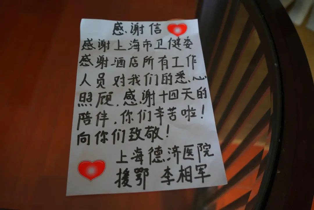 疫情发生之前,王欢和她的同学们在各自的岗位上认真工作实习;疫情严重时,他们自觉遵守国家、学校与酒店的相关规定在宿舍进行隔离与休假;疫情趋缓时,他们又陪同援鄂返沪医疗队度过了一段难忘的时光,受益匪浅。据王欢介绍,他们的工作主要是每天为援鄂返沪医护人员送餐四次:上午七点的早餐,九点半的水果,十一点半的午餐,下午五点半的晚餐。每次送餐都要穿厚重隔离服,戴头套、口罩、手套和脚套,推着手推车,把食物放进保温箱,然后送到医护人员的房间门口。就这样,四位实习学生与酒店工作人员一道和这群凯旋的“白衣天使”们朝夕相处了一个多月。叶俊和周杨说:“我们在为医疗队提供食物时严格做好了个人防护和消毒工作,没有一丝懈怠。而且为他们提供食物时我们很用心也很自豪。”周安全说:“有医生过生日时,我们会给他们做蛋糕、准备惊喜,在收到他们的感谢信时也会感到感动和骄傲。”