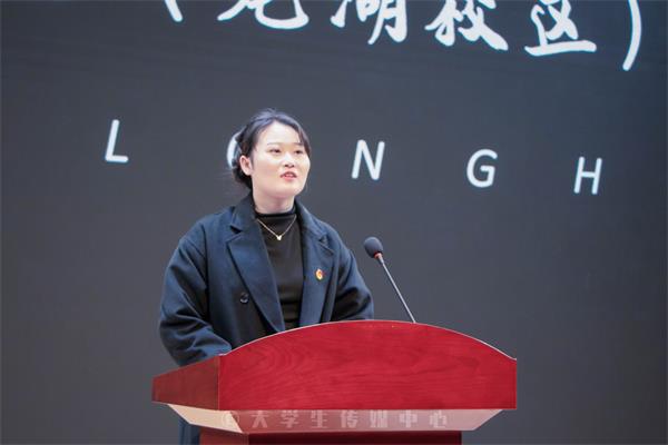 拥有安徽省优秀共青团员、安徽省社会实践先进个人、安徽省向上向善好青年提名奖、安徽省大学生年度人物提名奖等多个荣誉称号的单新海从日常学习、科技创新、社会实践和志愿服务四个模块与同学们分享了自己担任学生干部的成长经历以及对学生干部工作中的一些思考。戴梦亚曾获安徽省向上向善提名奖、第十三届安徽省青年志愿者先进个人、滁州市“红十字疫情防控优秀志愿者”,他以“牢记志愿精神,把握内心方向”为题,讲述其在桑涧镇南阳村、敬老院以及新冠肺炎疫情期间开展志愿服务的事迹。胡淑婉从思想引领、素质拓展、自身建设等三个方面介绍了校社联团支部工作展经验和做法。