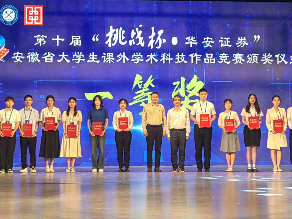 挑战青春,科创未来。6月11日下午,由团省委、省教育厅、省科协、省社科院、省学联共同举办的第十届“挑战杯 华安证券”安徽省大学生课外学术科技作品竞赛在淮南艺术文化中心落下帷幕。我校获得一等奖2项,二等奖8项,并在该项赛事中荣膺“优胜杯”。