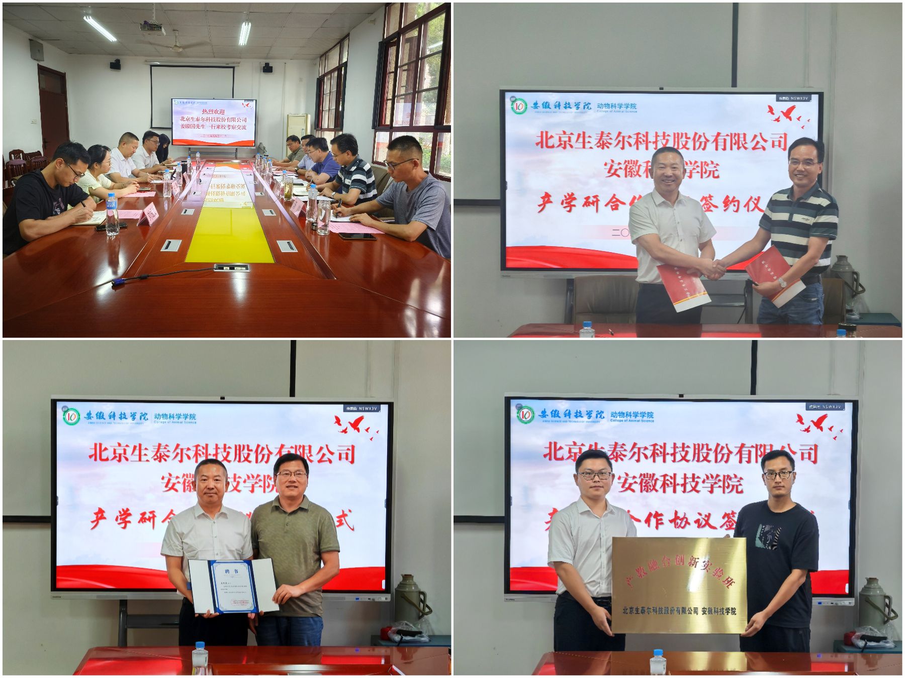 为进一步深化校企协同育人机制,促进产教融合,9月21日,我校与北京生泰尔科技股份有限公司校企合作签约仪式在凤阳校区西办公楼104会议室举行。校党委委员、副院长赵伟峰,北京生泰尔副总经理姜殿国、人事经理李伟良,教务处副处长、创新创业学院副院长高青海和动物科学学院党政领导出席仪式,仪式由动物科学学院党委书记程斌主持。