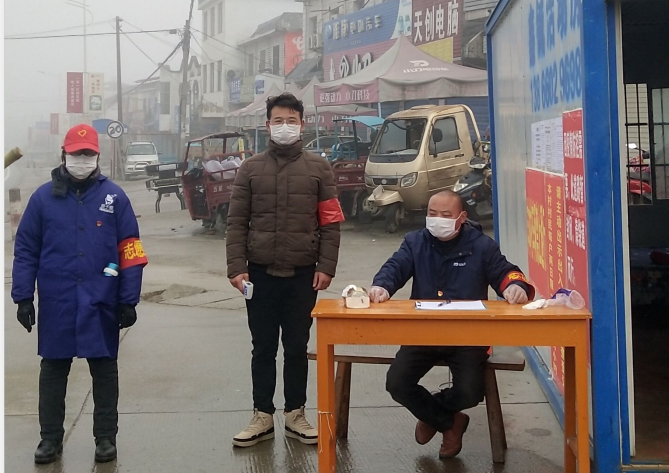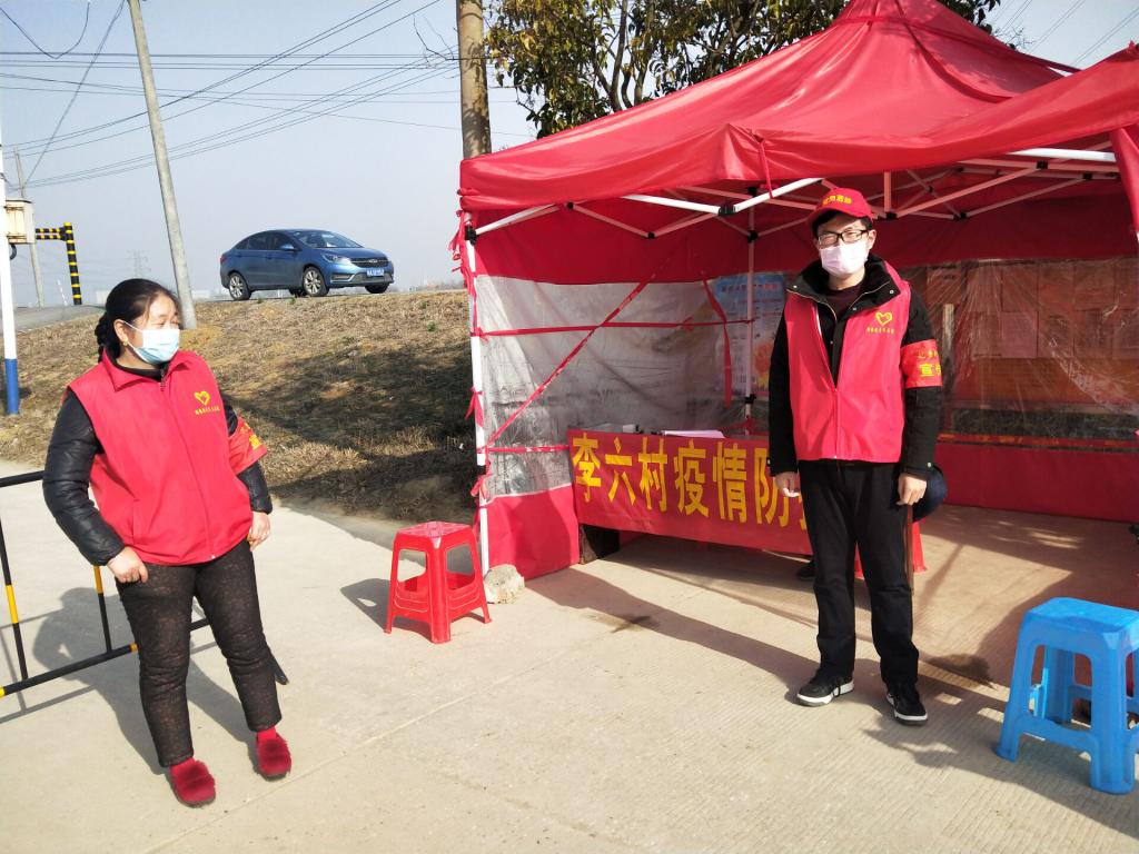 支部党员,电子科学技术162班胡锦召同学,在家乡合肥市肥东县李六村,积极宣传防疫知识,在疫情执勤点做志愿者,对进村车辆、人员进行排查、登记、测体温,加强联防联控,同时还协助村委会监督制止聚集性活动等,保障村民健康安全。