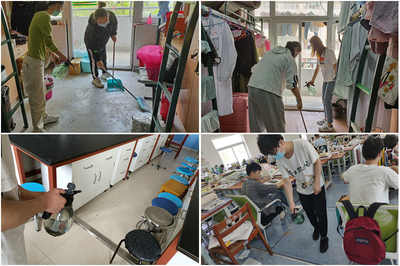 在集中签到、领取并分发活动所需物品后,党员同志们戴着口罩,纷纷撸起袖子加油干。各组先对学院会议室、学知楼部分楼层卫生间、部分学生寝室、部分实验室、部分教室进行卫生打扫后再进行消毒。大家不怕脏,不怕累,有的清理垃圾,有的打扫地面,有的消毒,随处可见忙碌的劳动身影,每一处卫生死角都得到了认真清理。经过数个小时的努力,指定地点干净整洁,面貌焕然一新。在经过进一步检查后,大家清洁器具,归还物品。