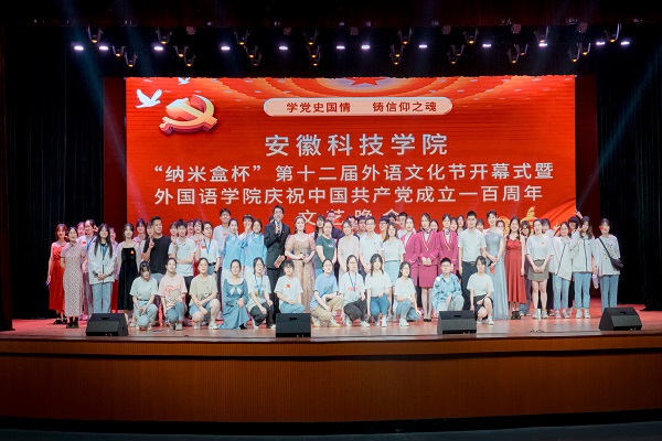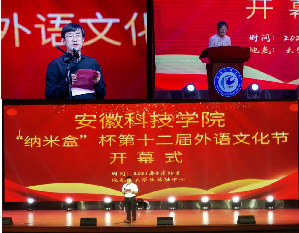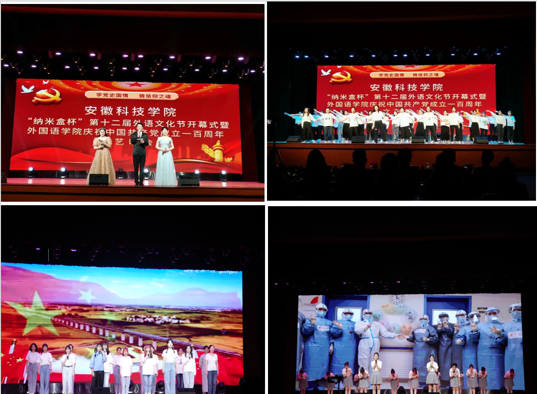 5月30日晚,云博官方网站_云博(中国)股份有限公司,“纳米盒杯”第十二届外语文化节开幕式暨庆祝中国共产党成立一百周年文艺晚会在大学生活动中心举行。校党委委员、宣传(统战)部部长卫胜,国际交流与合作处处长、港澳台事务办公室主任刘东楼,教务处处长、创新创业学院院长俞浩,党委学工部部长、学生处处长何永勇,校团委书记黄立义,招生与就业工作处副处长、招生办公室副主任、校友工作办公室主任何晓冬,外国语学院院长陈德用、党委书记蔡为青、副院长刘萍、党委副书记张海亮出席开幕式。开幕式由蔡为青主持。