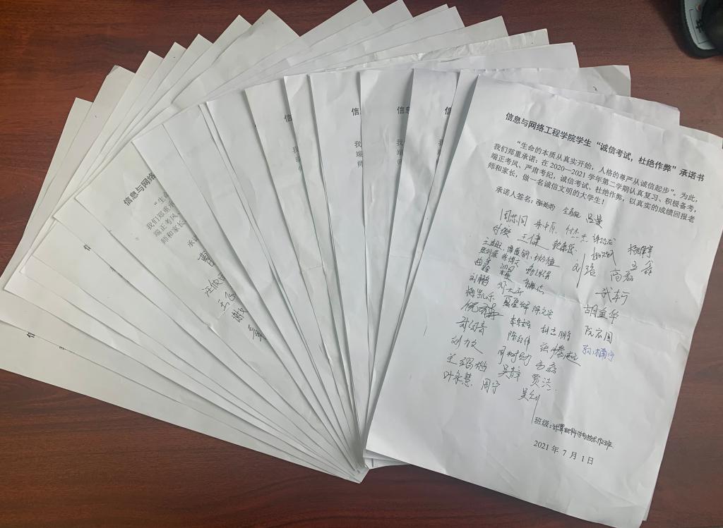 为确保将主题班会落到实处,学院专门制定《信息与网络工程学院考风考纪教育主题班会提纲》,准备了相关会议资料,要求各班辅导员按照提纲的内容和要求认真落实,精心准备。主题班会上,全体同学共同学习了《学生手册》中《云博官方网站_云博(中国)股份有限公司,考试工作实施细则(节选)》及《云博官方网站_云博(中国)股份有限公司,学生违纪处理方法》,开展了警示教育,按照《信息与网络工程学院诚信考试倡议书》的内容,发出了诚信考试倡议,希望同学们树立底线思维,积极响应学校的号召,手握诚信纸笔,书写高尚考风,坚决抵制各种舞弊行为,净化考场环境,展现自我真实水平,端正的考风、积极创造优良的学风。各班辅导员在总结时强调,诚信文明是立德成才的根本,是大学生必备的核心品质与基本修养,对大学生的未来职业发展、个人成才有着至关重要的作用。主题班会结束后,各辅导员组织全体学生签署了《信息与网络工程学院学生“诚信考试,杜绝作弊”承诺书》。