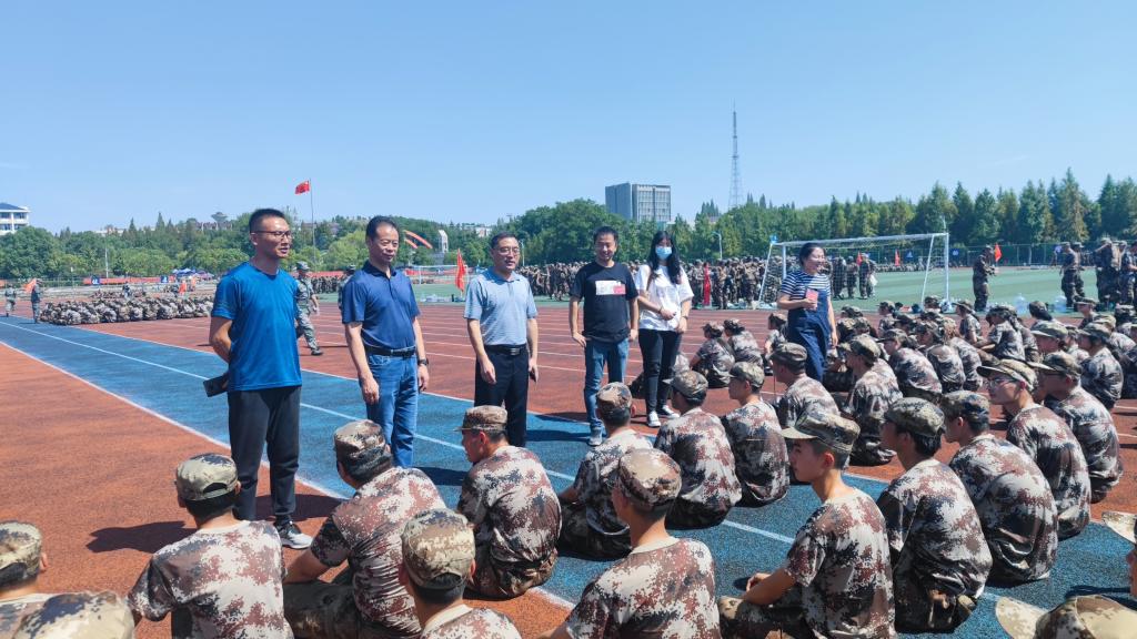 9月23日上午,动物科学学院党委书记姚勇,党委副书记、院长刘德义,党委副书记、纪委书记汤帅到军训现场看望慰问2021级军训学生,各新生班辅导员陪同。
