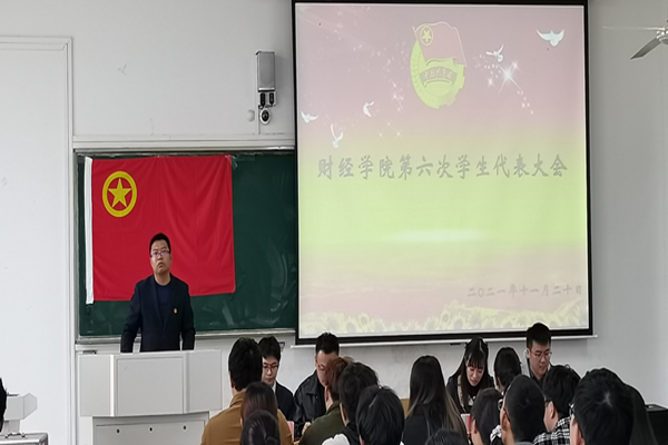 11月20日下午,财经学院第六次学生代表大会在致知楼C208教室顺利召开。财经学院党委书记杜小明,院团委书记、纪委副书记薛枫,学生会秘书长、辅导员朱中军,辅导员季昌文出席会议。来自学院各学生组织和班级的学生代表参加会议。会议由朱中军主持。