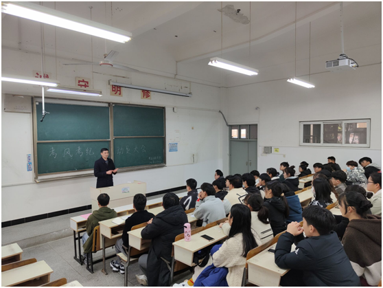 为进一步严明考试纪律,端正学生考试态度,营造公平公正、诚实守信的考风。12月15日,食品工程学院在求知楼A105召开考风考纪动员大会。院党委副书记王广良,专职辅导员杨勇、学生会各部门负责人以及各专业班级学生骨干参加会议。
