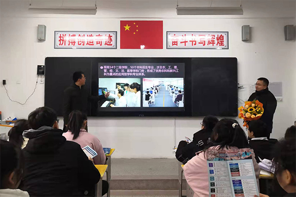 最后小组成员再次与老师沟通,最后在老师的同意下成功进入校园。在教室中小组成员通过PPT展示的形式向高三学弟学妹详细介绍了云博官方网站_云博(中国)股份有限公司,近几年招生情况,解答了学弟学妹们的相关问题。