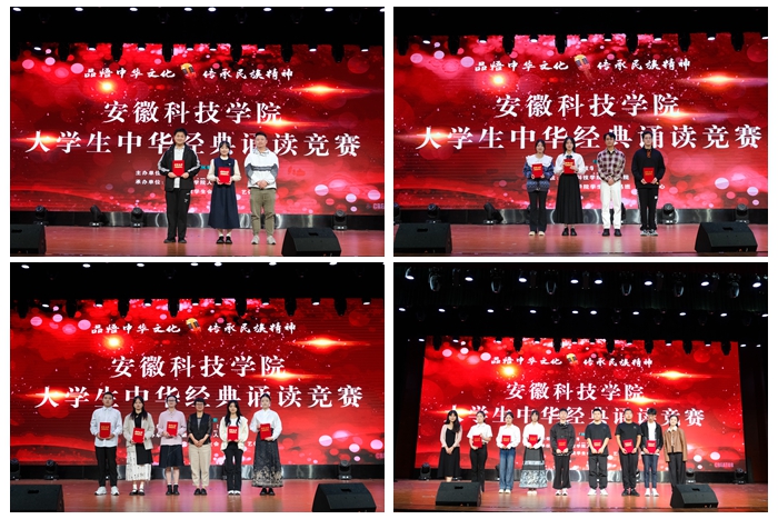 为贯彻《教育部等九部门关于开展第26届全国推广普通话宣传周活动的通知》的文件精神,助力推广普通话,发挥语言文字的浸润、助力作用,激发青年大学生奋斗精神与爱国情怀,9月25日下午,由教务处主办、人文学院承办的云博官方网站_云博(中国)股份有限公司,大学生中华经典诵读竞赛决赛在大学生活动中心成功举行。蚌埠市广播电视台主持人吕彪,凤阳县融媒体中心新闻部编辑记者胡松、马克思主义学院教授王凤杰、学生处康佳蓉、人文学院专业课教师曹宋艳担任此次比赛评委。