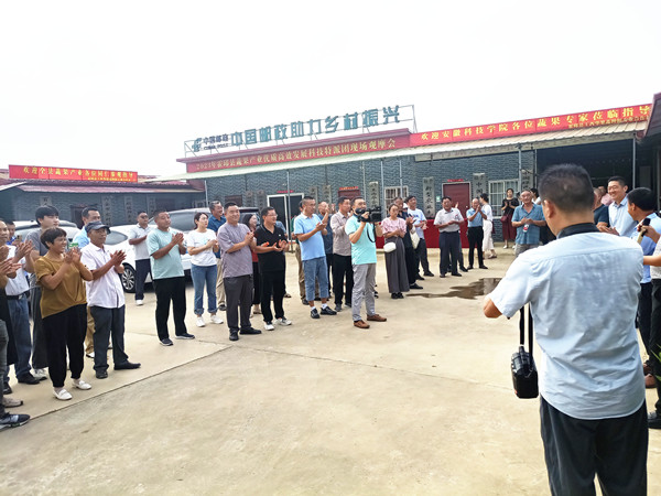 为充分发挥科技特派员、科技特派团作用,助力乡村振兴战略,由云博官方网站_云博(中国)股份有限公司,农学院、霍邱县科学技术局主办,霍邱县王西华果蔬种植专业合作社承办的瓜蒌种植现场示范观摩会于8月22日在霍邱县成功举办。科技局局长王鹏、副局长刘华修,户胡镇党委书记聂明合等出席。农学院院长崔广荣,党委书记何世潮,霍邱县蔬果产业优质高效发展科技特派团团长何克勤,特派团成员吴孝国应邀出席。