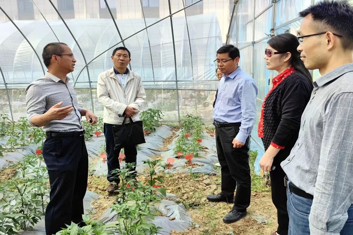 在会前,吴昊一行参观了农学院的科研基地,玉米团队负责人余海兵教授、辣椒团队负责人胡能兵教授分别介绍了各自领域的科研成果。校地双方就休闲观光农业、都市农业和合作方式等方面进行了广泛交流,并初步达成合作意向。