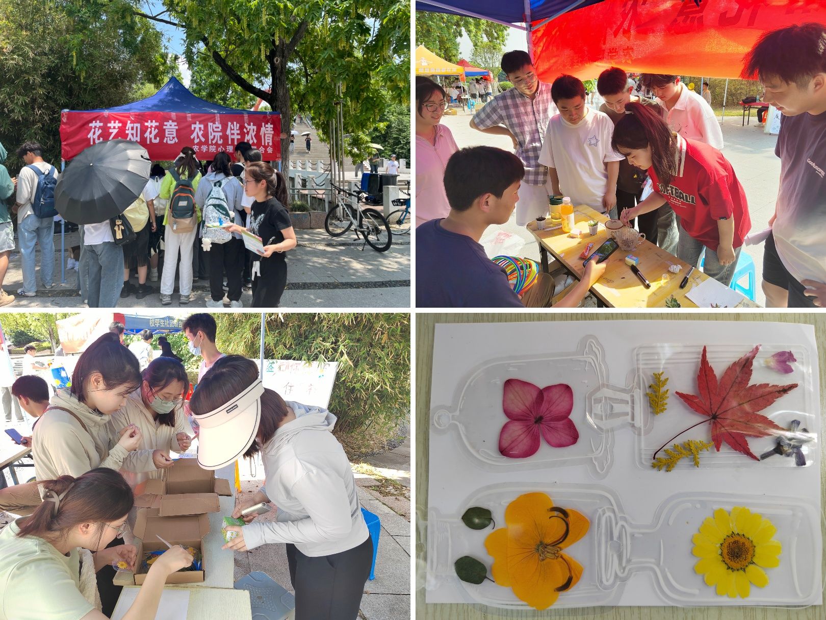 为关注学生心理健康、丰富校园文化生活,5月22日,农学院在西区小广场举办了以“花艺知花意,农院伴浓情”为主题的心理游园会活动。学院心理健康指导老师薛晶晶全程指导。