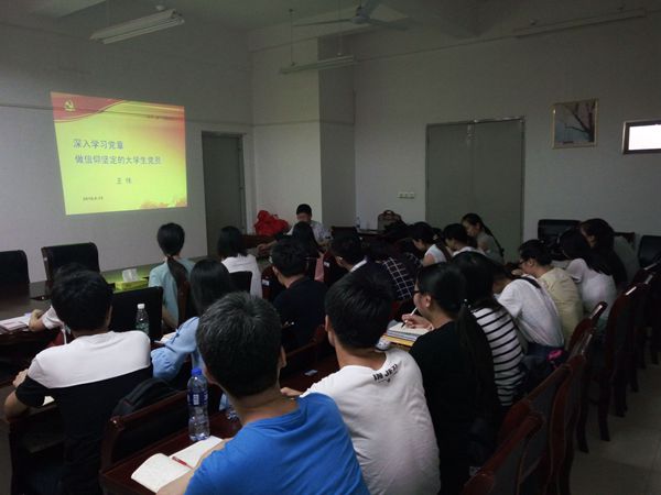 最后,王伟向全体学生党员提出三点希望和要求:一是加强政治理论学习,不断提高党性修养,注重培养明辨是非的能力、求真务实的精神和创新进取的精神;二是强化党员身份意识和宗旨意识,在同学中间注重发挥模范带头作用,树立党员的良好形象;三是积极参加组织生活,认真开展“两学一做”, 将学习教育融入日常的工作、学习和生活,联系实际,务求实效。