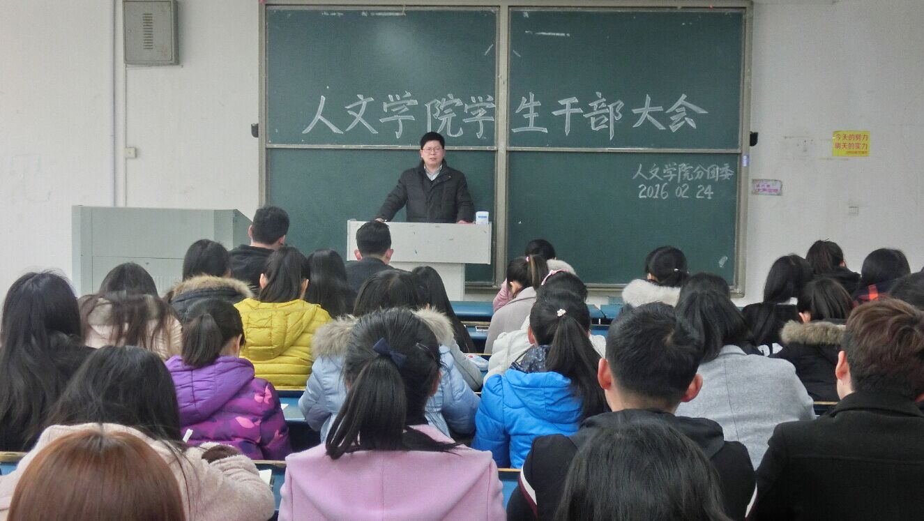 2月24日,人文学院新学期主要学生干部大会在新A106教室召开。学院党总支副书记王伟、分团委书记兼党总支秘书李月月、辅导员李沙娜、学生会主席团及各部门负责人、各班级主要学生干部参加会议。会议由李沙娜主持。