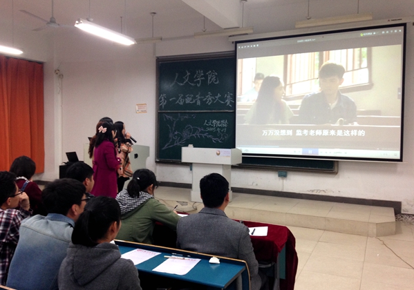为培养学生人文素质,展现特殊才能,4月19日晚,人文学院首届配音秀大赛在新B202教室举办。人文学院辅导员黄钦海、人文学院学生会主席李雪丰、校广播站站长单涛、人文主持队队长胡丽婷、人文学院歌手队队长赵浩担任评委。洪小燕主持比赛。