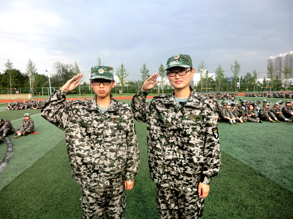 休息时,记者注意到一位名叫訾莉的女生走向旁边的14连队,询问后才知道原来她是去找双胞胎姐姐訾娟的,这对双胞胎姐妹因为专业不同分属两个不同连队,却在每次休息时都互到各自连队,或交流训练心得,或互相介绍新同学新朋友。