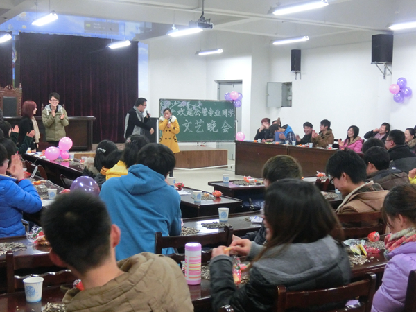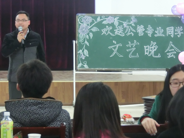 3月2日晚,由人文学院学生会主办的欢送公管专业同学文艺晚会在模拟法庭举办。人文学院辅导员黄钦海老师到场观赏了晚会。晚会由刘伟、余宇主持。