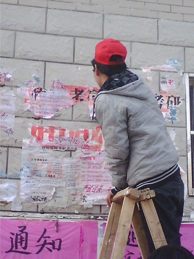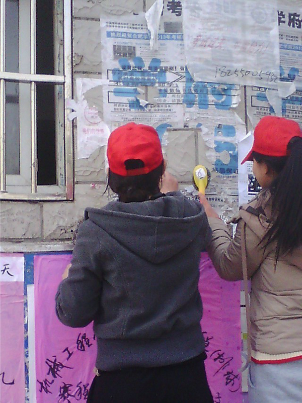 当天下午2:30,人文学院青年志愿者协会的十几名志愿者在该协会会长朱琴芳的带领下,前往西区学生宿舍的通知栏处开展了清理小广告的活动。