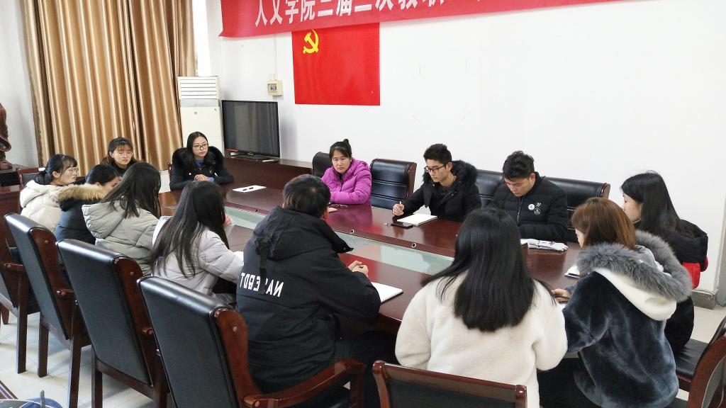 12月13日中午,人文学院在学院会议室召开学生思想动态信息员会议。辅导员李沙娜及全体思想动态信息员参加会议,会议由台晓明主持。