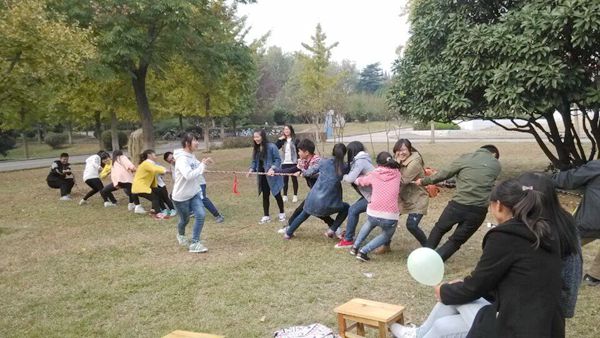 11月1日上午,为了让大家得到了身体和心灵的放松,感受到与人合作的快乐,院心理委员联合会组织了新生一起进行了抢凳子、抱团、心口不一、拔河、捕鱼、六人七足等户外游戏。活动现场精彩不断,高潮迭起,每个人脸上都挂满了笑容。