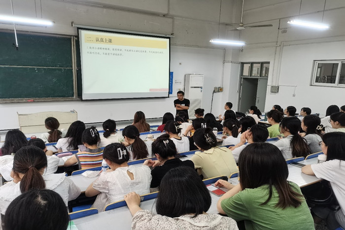 为加强英语专业师范生发展平台建设,充分发挥中学英语优秀教师的引领和示范作用,促进英语师范生的专业化成长,6月21日上午,外国语学院邀请凤阳县实验中学黄倩倩、阳光中学余宪龙两位优秀中学英语教师来我校做初中英语示范教学的讲座。讲座在求知楼A座106举行,由外国语学院副院长洪民主持,2020级英语专业学生聆听讲座并观摩学习,院长刘萍及部分任课教师也参加了本次活动。