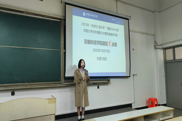阅读、写作、演讲三项赛事分别遴选出2名优秀选手,笔译、口译两项赛事分别遴选出1名优秀选手代表我校参加安徽省复赛。本次比赛将知识传授和能力培养融为一体,切实推进“三进”工作落地落实,既展现了我校外语的教学成果,又有助于促进具有家国情怀、全球视野和专业本领的外语专业人才和复合型外语人才的培养。(特约通讯员:杨金洁 摄影:王凡、王黎韬 审核:刘萍)