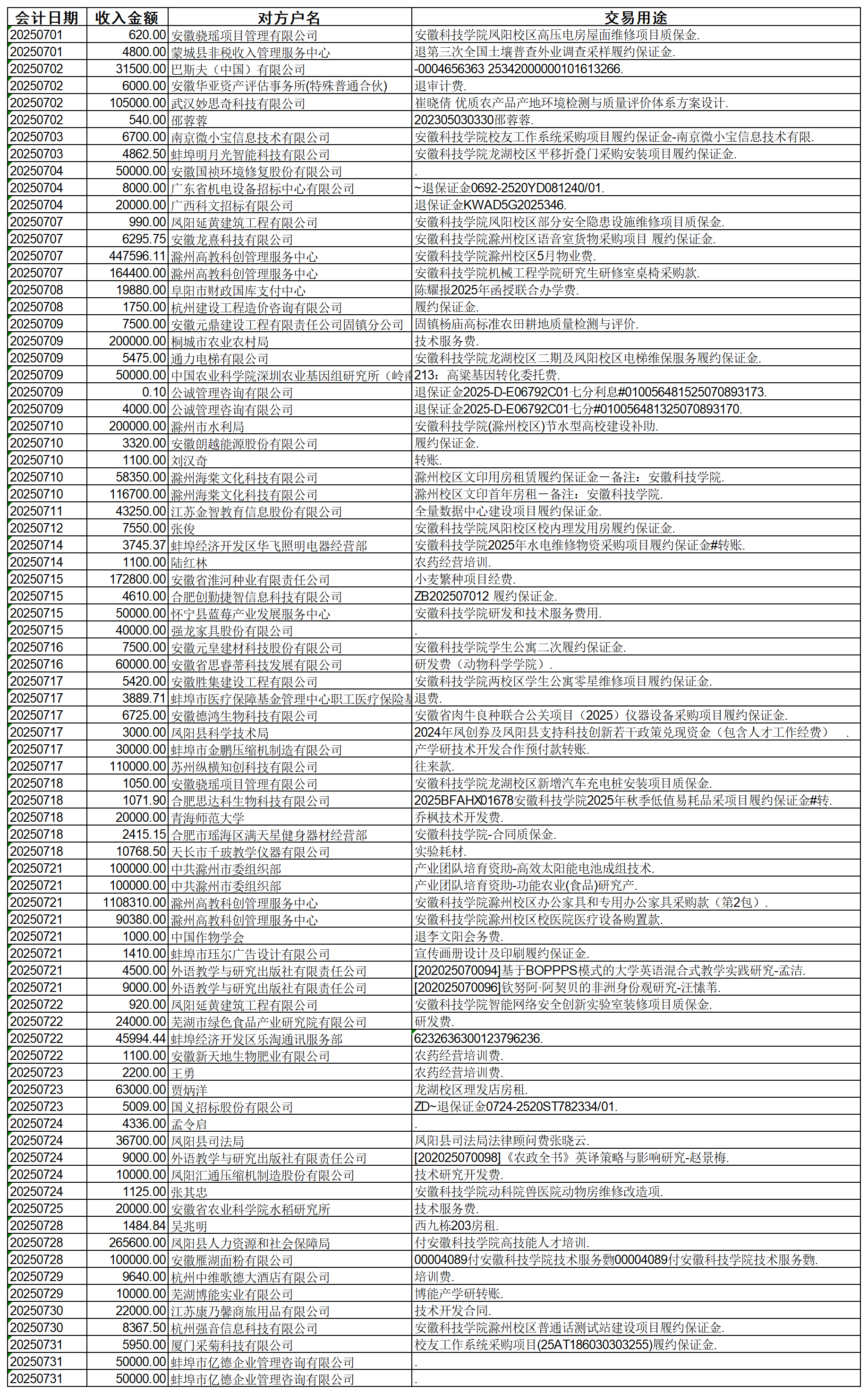 2025年7月份到账信息(20250701-20250730)-2025年7月31日更新(请各位老师汇款至学校账户时务必写清交易附言)