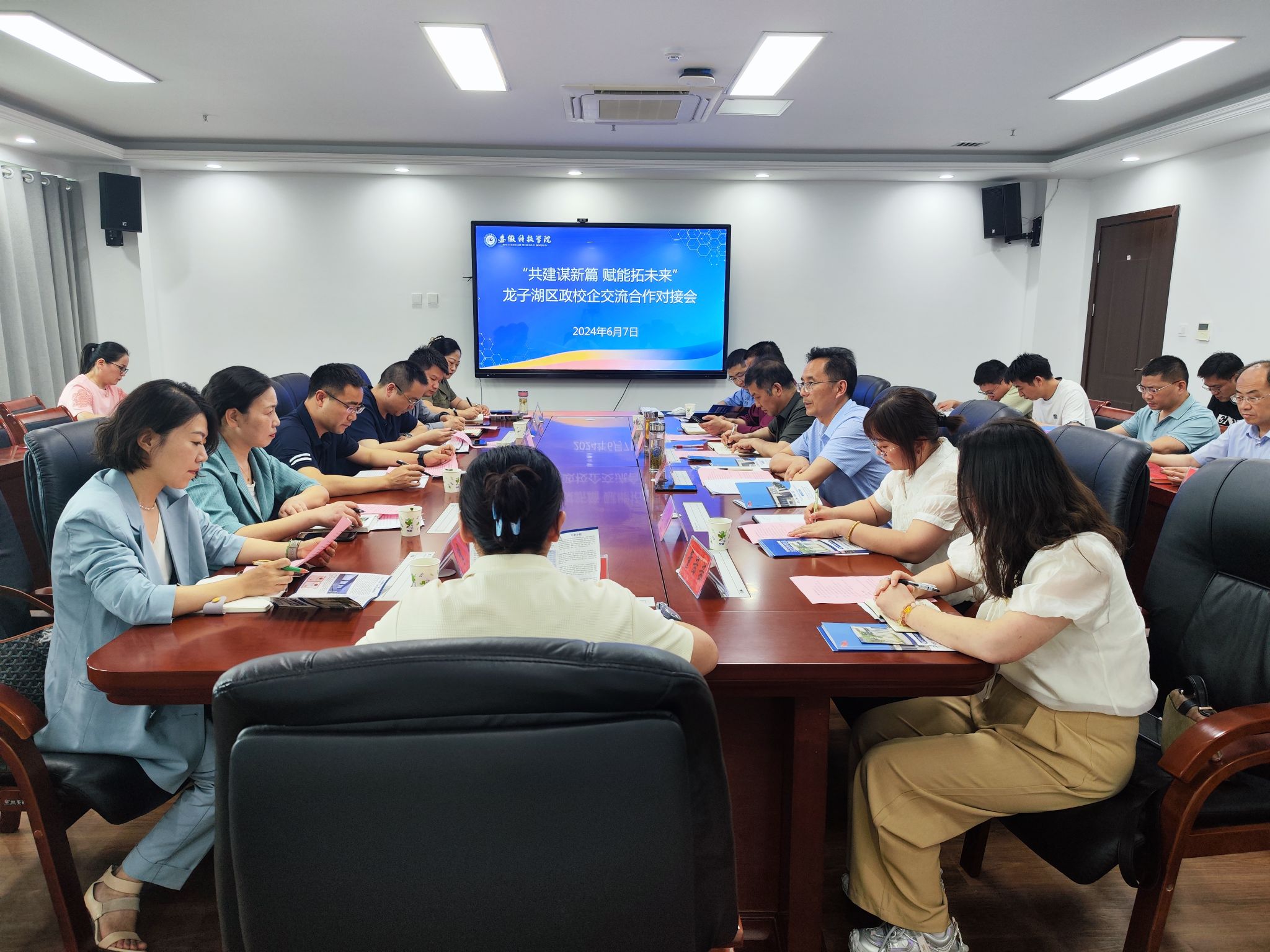 会上,黄树桥对汪四汝一行表示欢迎,希望以此次对接会为契机,深化政府、学校、企业在人才培养、平台共建、成果转化等方面的合作关系。化学与材料工程学院党委副书记、院长李子荣介绍了学校建设特色鲜明的应用型高水平大学的定位目标和专业学科、重点平台建设。他详细介绍了学院发展历程、专业学科建设、师资队伍、人才培养和学院服务企业等情况。