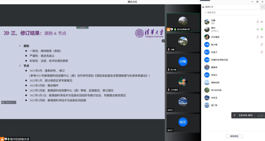 会议由教育部科学技术与信息化司副司长张国辉主持。会上,清华大学实验室管理处副处长艾德生对《高等学校实验室安全检查项目表(2022年)》修订内容以及本年度检查重点进行详细解读,苏州大学实验室与设备管理处处长魏永前和中国矿业大学安全科学与应急管理研究院院长李爽等专家就各自学校的实验室安全管理体系的构建与实施、双重预防机制在实验室安全管理中的应用等内容进行报告交流。