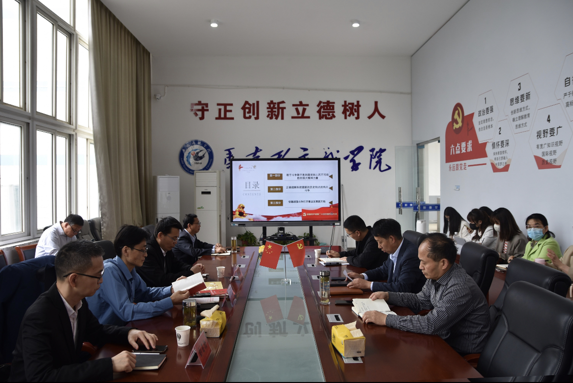 报告以解读党的二十大报告为本,紧扣“发扬斗争精神,应对风险挑战”为题,从历史逻辑、理论逻辑、现实逻辑,全面阐释“敢于斗争敢于胜利是党和人民不可战胜的强大精神力量”、“正确理解和把握新的历史特点的伟大斗争”、“依靠顽强斗争打开事业发展新天地”,系统分析了我国面临的严峻国内国际形势和改革发展稳定任务,提出要保持战略清醒,应对各种风险挑战做到心中有数;要保持战略自信,增强斗争的底气;要保持战略主动,增强斗争本领。时代要求我们要有斗争精神、斗争本领,但不是与生俱来的,而是要在政治历练、实践锻炼中经风雨、见世面、壮筋骨,在伟大斗争的实践中发扬斗争精神、增强斗争本领。张德化总结强调,要深刻领会党的二十大报告中关于“三个务必”的新要求,学习贯彻习近平总书记关于发扬斗争精神、应对风险挑战的重要论述,充分认识伟大斗争的长期性复杂性艰巨性,不断提高安全警惕意识、磨练攻坚克难的本领,随时准备经受风高浪急甚至惊涛骇浪的重大考验,在风险挑战面前有智慧、有底气、有担当,依靠顽强斗争开创学院发展新局面。