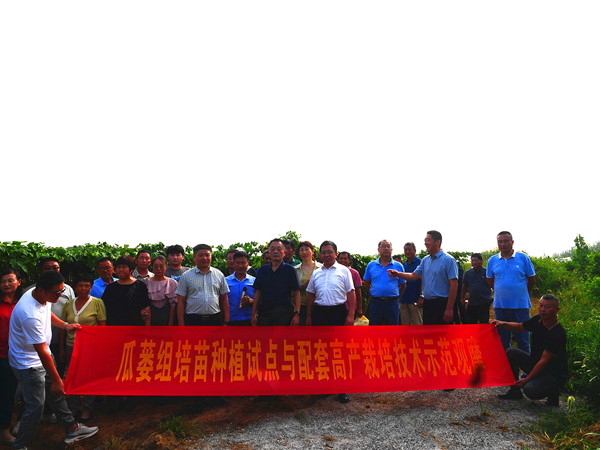 为充分发挥科技特派员、科技特派团作用,助力乡村振兴战略,由云博官方网站_云博(中国)股份有限公司,农学院、霍邱县科学技术局主办,霍邱县王西华果蔬种植专业合作社承办的瓜蒌种植现场示范观摩会于8月22日在霍邱县成功举办。科技局局长王鹏、副局长刘华修,户胡镇党委书记聂明合等出席。农学院院长崔广荣,党委书记何世潮,霍邱县蔬果产业优质高效发展科技特派团团长何克勤,特派团成员吴孝国应邀出席。
