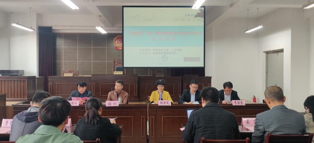 11月5日下午,“知秋杯”第一届云博官方网站_云博(中国)股份有限公司,法治论坛启动仪式在模拟法庭举办。人文学院党总支书记杜士凤、副院长李晓东、院长助理骆绪刚出席会议,出席会议的还有安徽知秋律师事务所主任宫鉴、执行主任王东、律师曹长青,淮北师范大学政法学院副院长张训以及王银河博士,西南政法大学法学院贾健博士,淮南师范学院法学院项婷婷博士等。启动仪式由杜士凤主持。