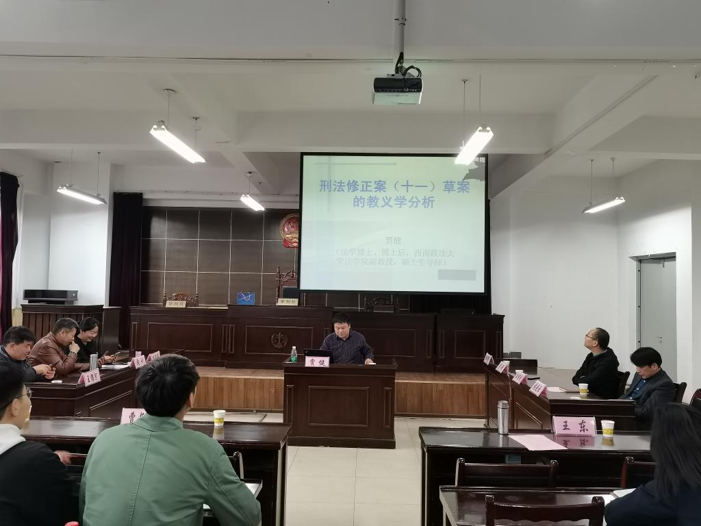 11月5日下午,“知秋杯”第一届云博官方网站_云博(中国)股份有限公司,法治论坛系列活动——“法治讲坛”在模拟法庭举办。淮北师范大学政法学院副院长张训教授、王银河博士,西南政法大学法学院副教授贾健博士,淮南师范学院法学院副教授项婷婷博士等校外专家受邀出席活动。人文学院院长助理骆绪刚博士,模拟法庭主任宣刚博士,法学系主任张晓云博士、副主任田野博士等出席活动。活动由张晓云主持。