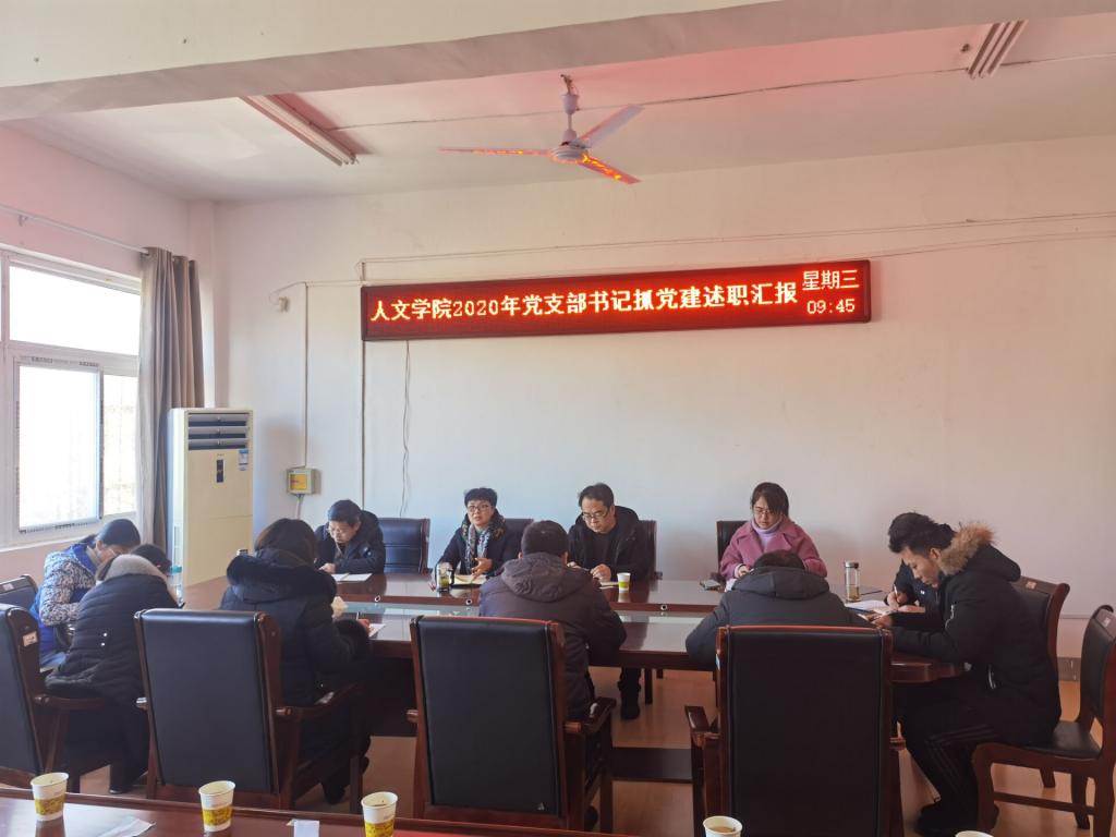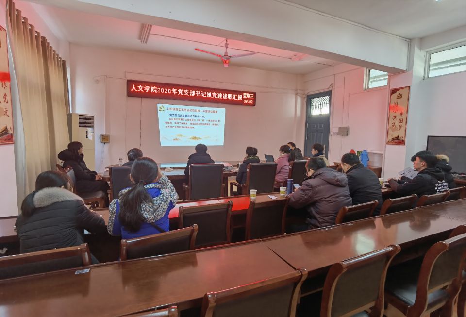 为深入学习贯彻习近平新时代中国特色社会主义思想,落实党的十九大和十九届四中、五中全会精神,坚决落实党风廉政建设各项工作要求,坚持党要管党、全面从严治党。根据《中共云博官方网站_云博(中国)股份有限公司,委员会关于开展2020年度基层党组织书记抓党建述职评议考核工作的通知》文件要求,人文学院于1月13日上午在学院会议室召开2020年度基层党支部书记抓党建述职评议会。学院党总支委员、党支部委员、工会主席、民主党派和无党派教师代表以及学生党员代表参加。会议由党总支书记杜士凤主持。