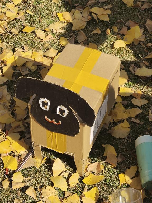 彩笔与胶水画出一个个生动形象,粘出一只只可爱“宠物”。用画笔描绘,用剪刀剪裁,用胶水黏贴和装饰,方方正正的快递盒,一变成为活灵活现的“宠物”,嬉戏的孩子受到吸引,拿起同学们做好的“宠物”在草地上追逐嬉闹,不亦乐乎。