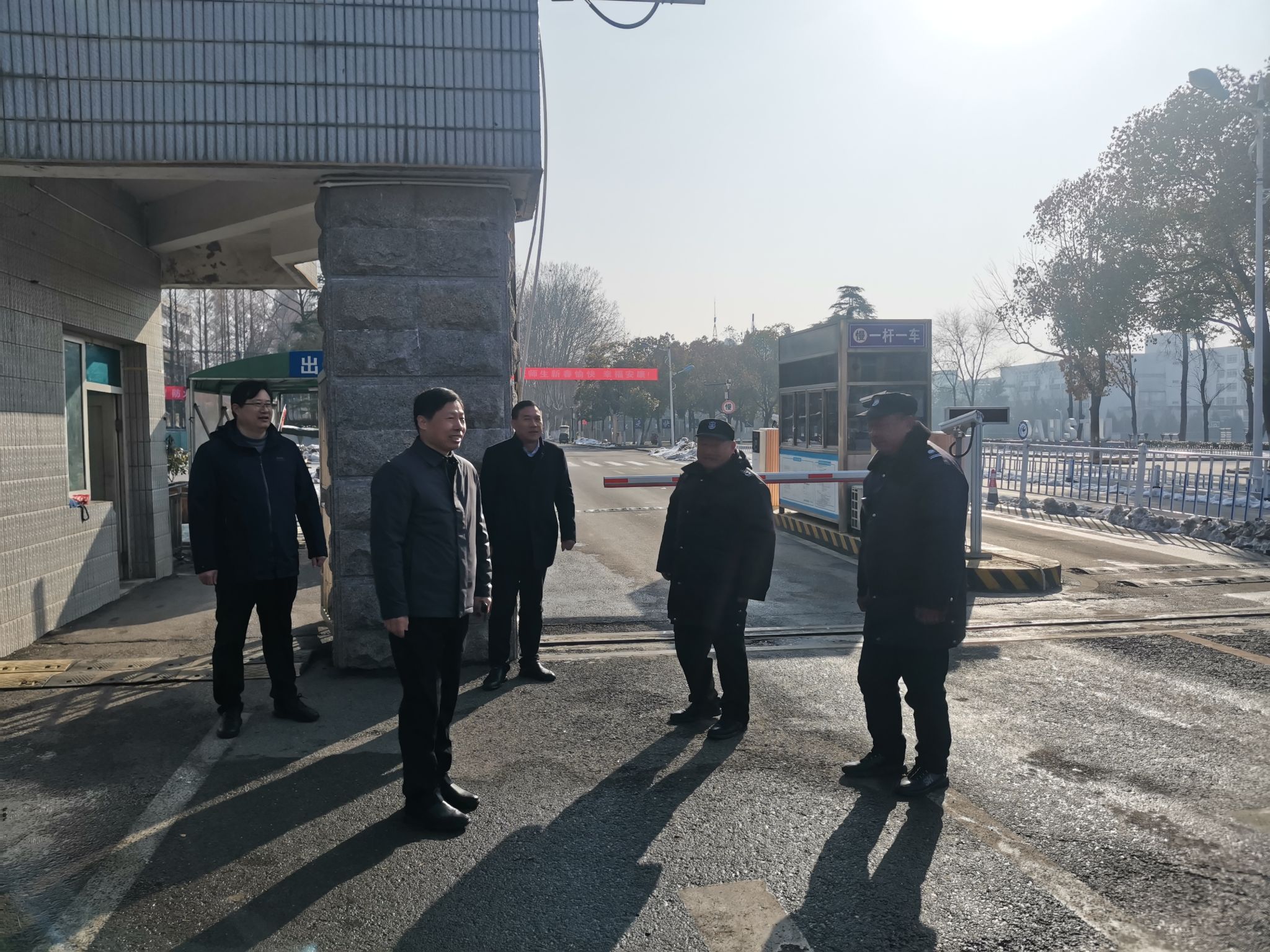 2月10日(正月初一)上午,校党委书记时伟分别来到凤阳校区、龙湖校区走访慰问春节期间坚守岗位的一线干部职工,为他们送上新春祝福。