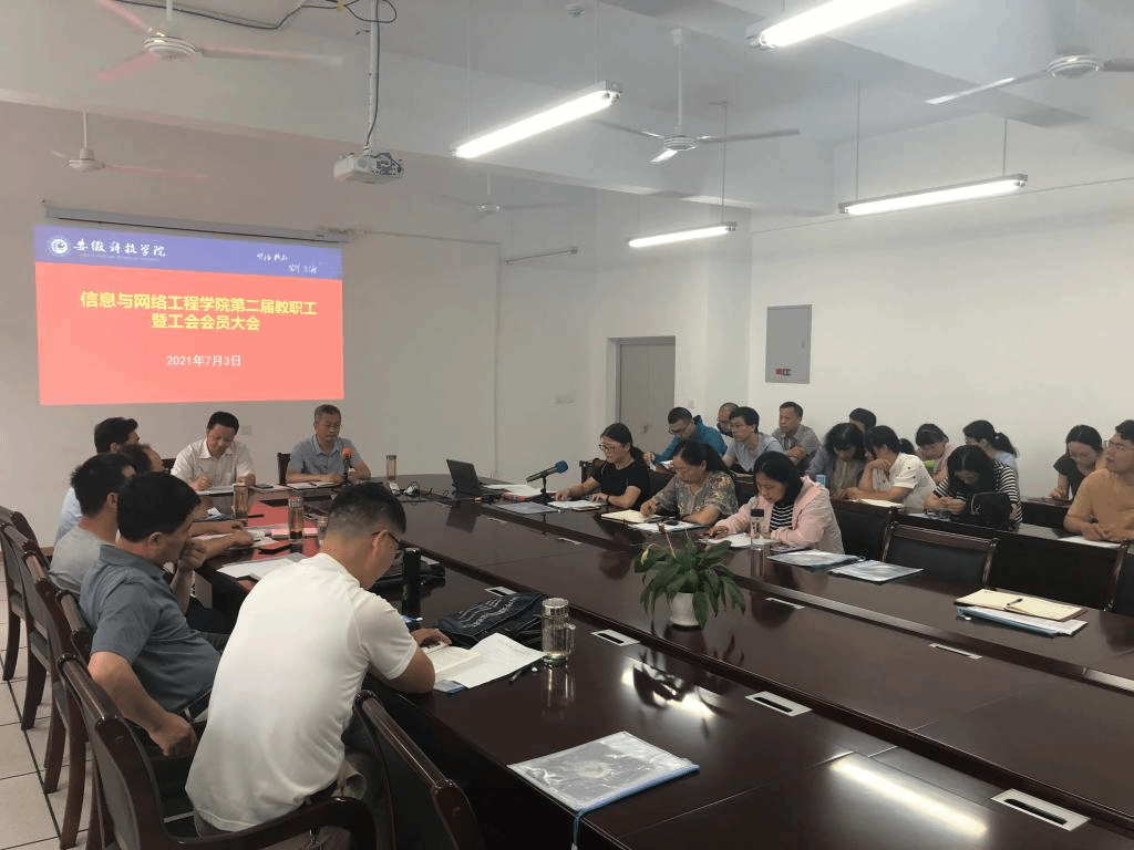 7月3日上午,信息与网络工程学院在尚行楼B418会议室召开第二届教职工暨工会会员大会。信息与网络工程学院全体教职工参加了大会,会议由院党委书记王振其主持。