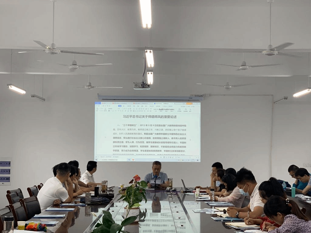 会上,王振其传达了《中共云博官方网站_云博(中国)股份有限公司,委员会关于印发<云博官方网站_云博(中国)股份有限公司,2021年师德师风专题教育工作方案>的通知》精神。他指出,要全面贯彻习近平总书记关于教育的重要论述和全国全省教育大会精神,落实中共中央、国务院《关于全面深化新时代教师队伍建设改革的意见》《深化新时代教育评价改革总体方案》和中共安徽省委、安徽省人民政府《关于全面深化新时代教师队伍建设改革的实施意见》,推进实施教育部等七部门《关于加强和改进新时代师德师风建设的意见》。会上,王振其组织全体教职工深入学习了习近平总书记关于师德师风的重要论述,通报了教育部公开曝光8起违反教师职业行为十项准则典型案例,重点强调了“三个牢固树立”、“四有”好老师、“四个引路人”、“四个相统一”等内容。王振其指出,2016年12月全国高校思想政治工作会议召开以来,习近平总书记多次发表重要讲话强调立德树人和“师德师风”的重要性。立德树人是高校的根本任务,师德师风是高校教师的立身之本,是实现立德树人的重要途径。