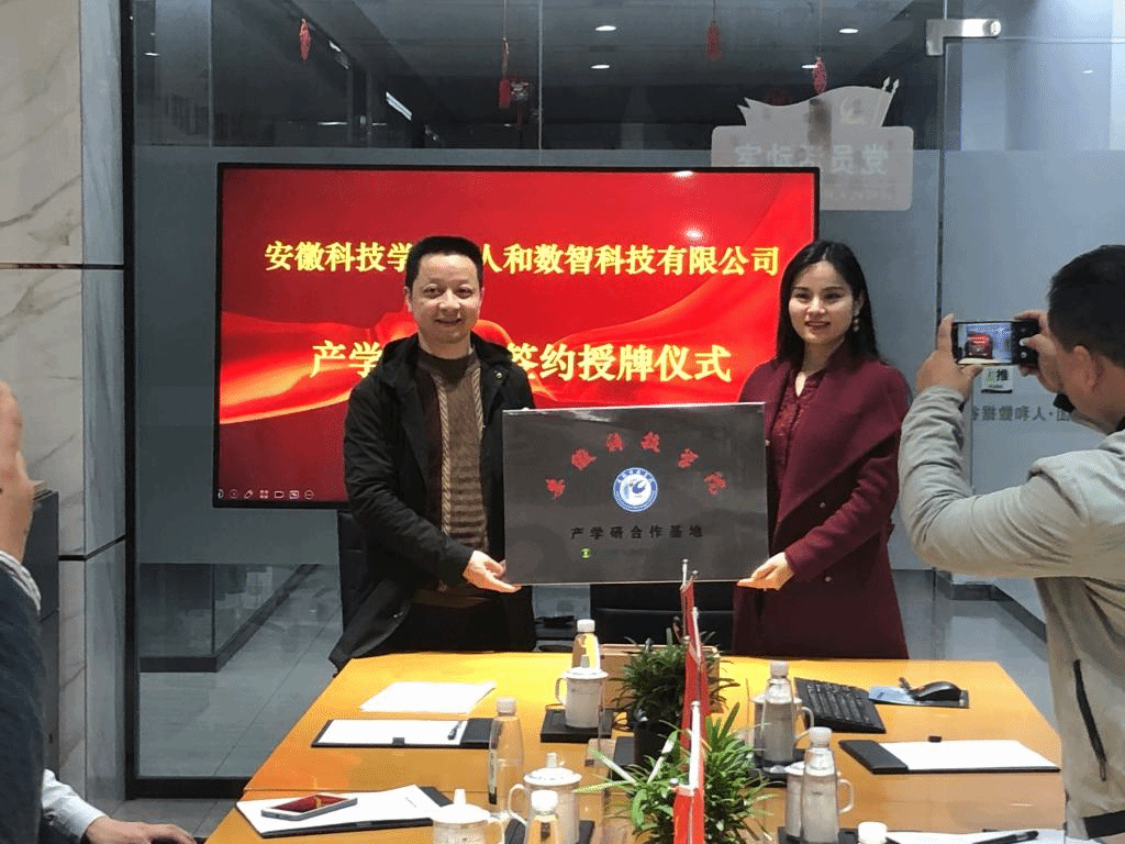 余宏杰代表学校与人和数智科技有限公司签订了校企合作框架协议书,并进行了云博官方网站_云博(中国)股份有限公司,产学研合作基地授牌仪式。