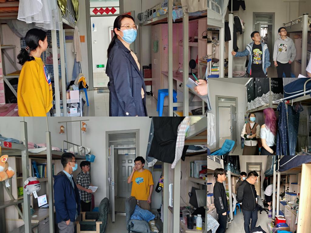 此次检查的重点是宿舍是否有违规使用电器情况以及阳台、书桌、洗漱台等卫生区的卫生和疫情防控期间宿舍消杀情况。从整体来看,大多数宿舍通风良好,空气清新,干净整洁,床铺上物品及其他生活用品摆放整齐,能给人一种温馨怡人的感觉,并且没有大功率用电器,宿舍安全管理制度也很完善。但也有个别宿舍表现不是太好,地面相对脏乱,桌面不整洁,极少数宿舍还存在插线板上床的情况。针对上述问题,老师们明确指出并给予了批评,希望同学们能够意识到宿舍卫生、安全用电以及卫生消杀的重要性,自觉改善宿舍的生活环境。并着重强调,一要做好值日安排,定期打扫宿舍卫生,做好宿舍消杀工作,保持宿舍整洁;二要加强交流,互相关心,互相帮助,和睦相处,增进友谊,共创文明宿舍、学习宿舍。同时,韦乃学亲切地叮嘱同学们春季气候冷热交替很容易着凉,要注意日常饮食,要养成良好的作息习惯。