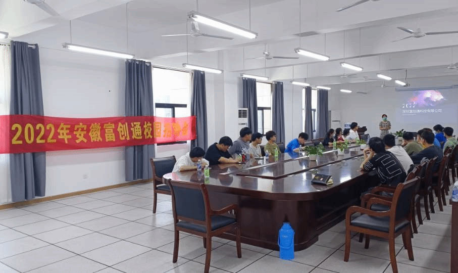 为积极响应就业促进周暨“百日冲刺”活动,促进2022届毕业生更充分就业、更高质量就业,5月24日下午,信息与网络工程学院在尚行楼B418会议室举办深圳富创通科技有限公司专场招聘会。富创通集团安徽分公司副总经理付丽萍、助理司彤彤代表总公司来校招聘,招聘会由付丽萍主讲,学院35名有意向应聘富创通公司的学生参加了招聘会。