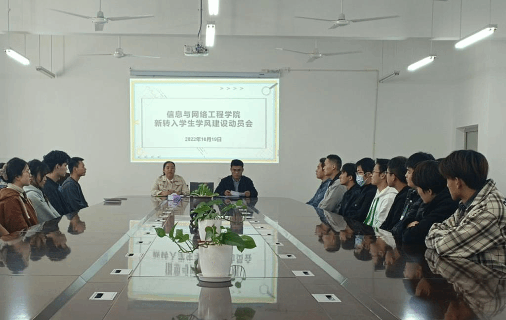 为全面了解新转入学生学习生活适应情况,进一步促进学院学风建设,10月19日下午,信息与网络工程学院在尚行楼B418会议室召开新转入学生学风建设动员会,学院党委副书记、纪委书记韦乃学、专职辅导员李军成及20名新转入学生参加了本次会议,会议由韦乃学主持。
