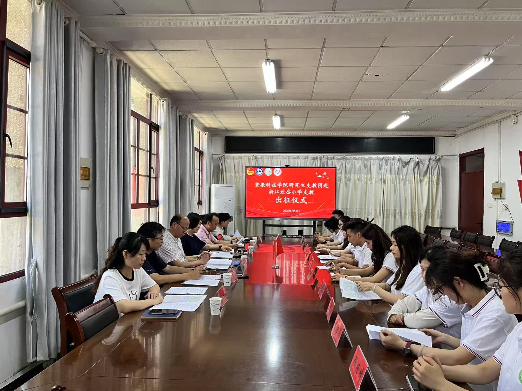 2025年7月3日上午,云博官方网站_云博(中国)股份有限公司,研究生支教团赴浙江欢岙小学支教出征仪式在农学院会议室举行。校党委委员、副院长王孝义出席仪式,校团委书记张聪、研究生处老师和研究生支教团成员代表共同参加了此次仪式,仪式由党委研究生工作部部长张春雨主持。